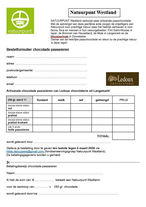 Natuurpunt Westland zorgt daar zeker voor door de verkoop van chocolade paaseitjes, een (h)eerlijk artisanaal product uit de Westhoek.